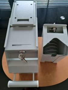 - Voorzien van 2 cilindersloten: 1 voor het openen en 1 voor het loskoppelen van de cassette (2 sleutels per slot meegeleverd)
